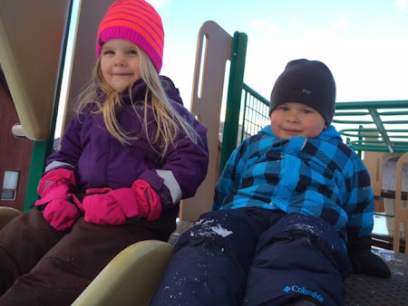 Mckinley and Joshie had fun playing in the snow and on the slides.